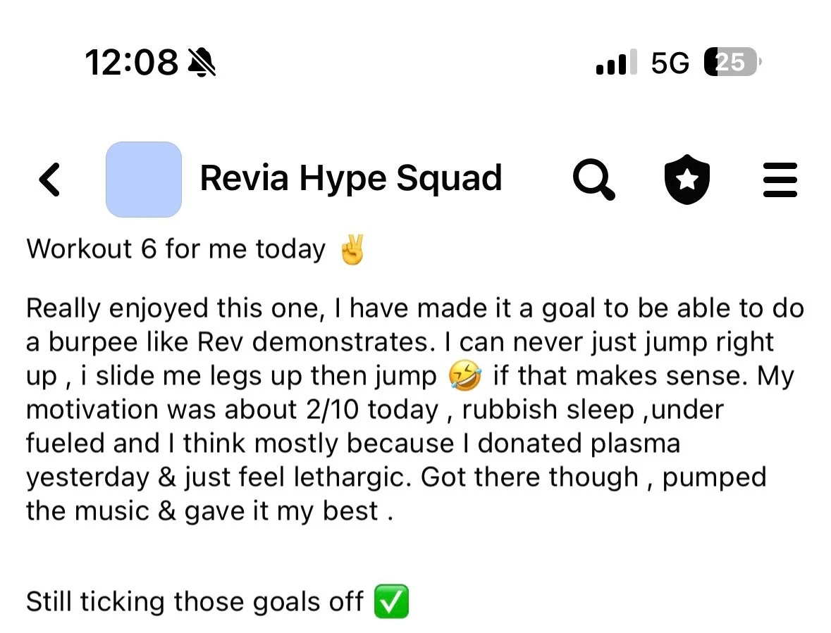 Get the extra hype and accountability you need in the Revia Hype Squad Facebook Group. Let’s rewrite your fitness story, together. Because this year, we’re keeping promises to ourselves.